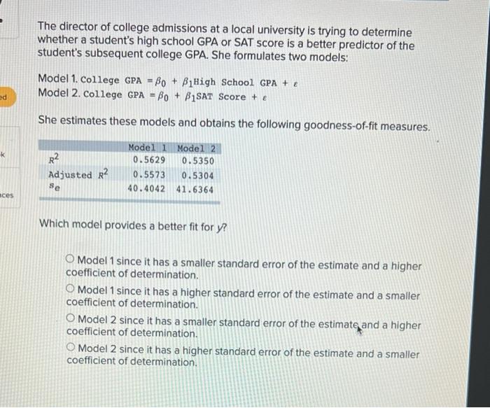 Solved A Dean Of A Business School Has Fit A Regression Chegg Com